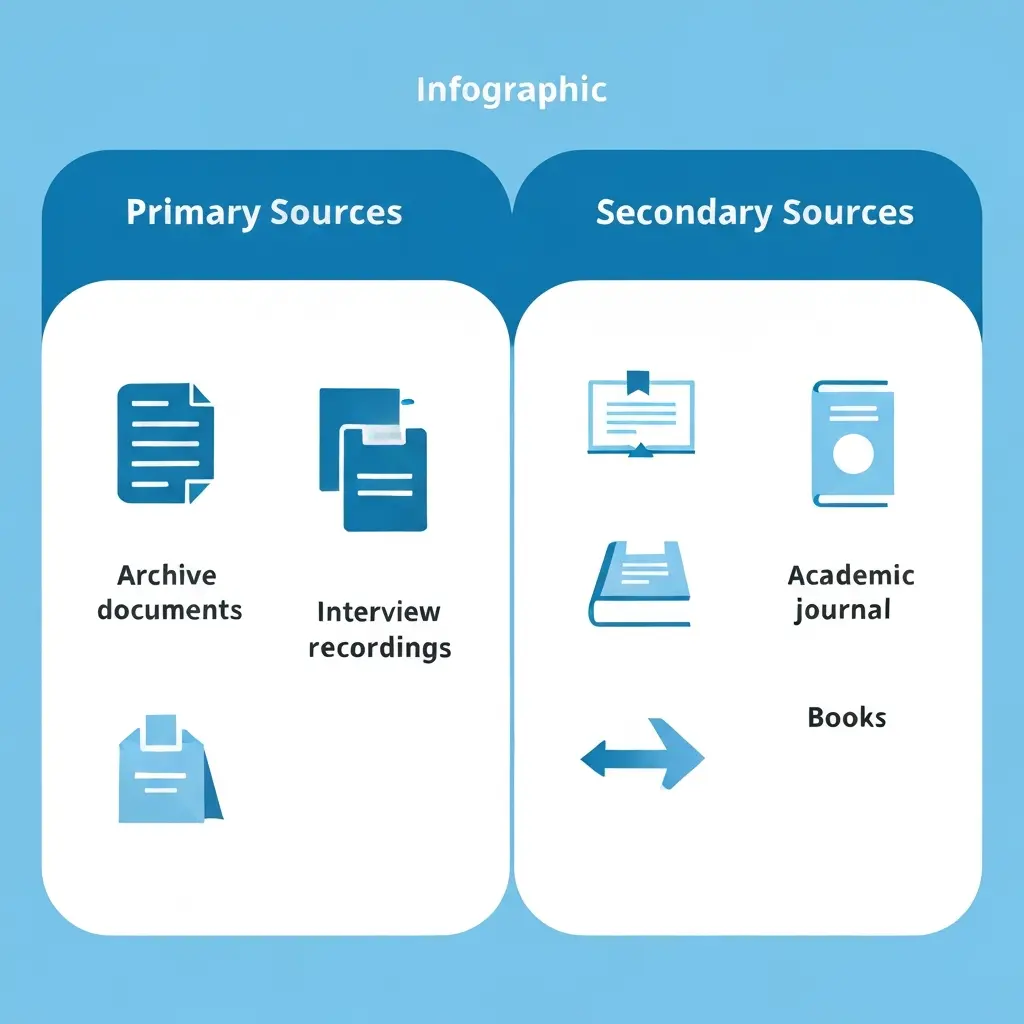 La distinction est simple en théorie mais subtile en pratique : une source primaire est un document original, produit au moment des faits ou directement issu de la recherche originale. Une source secondaire est un travail qui analyse, commente ou interprète des sources primaires. La même source peut d’ailleurs être primaire ou secondaire selon l’usage que vous en faites dans votre mémoire.
